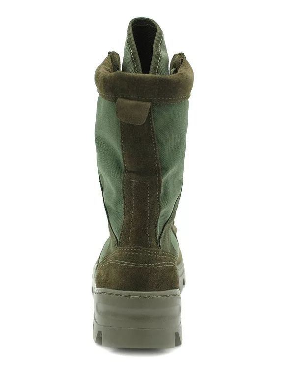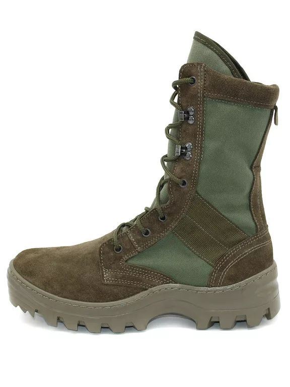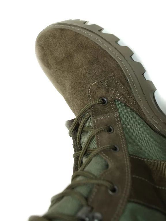 Верх ботинка выполнен из натуральной кожи спилок «Велюр» и высокопрочного, дышащего прочного нейлонового материала, что делает данную модель намного легче ее кожаных аналогов. Это можно по достоинству оценить в условиях жаркого климата при повседневной носке. Также данная модель была не раз замечена на бойцах специальных подразделений.