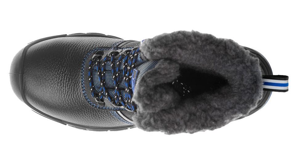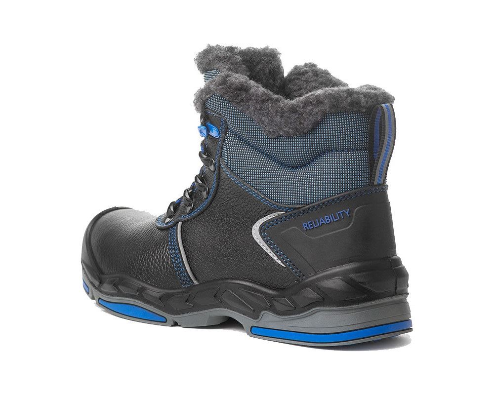 Ботинки утепленные шерстяным мехом с глухим клапаном и мягким кантом, шнуровкой на металлических петлях, светоотражающими элементами, с защитным композитным подноском и антипрокольной кевларовой стелькой, с жестким термопластическим задником укрепленным задинкой из ТПУ вставки на двухслойной подошве ПУ/НИТРИЛ