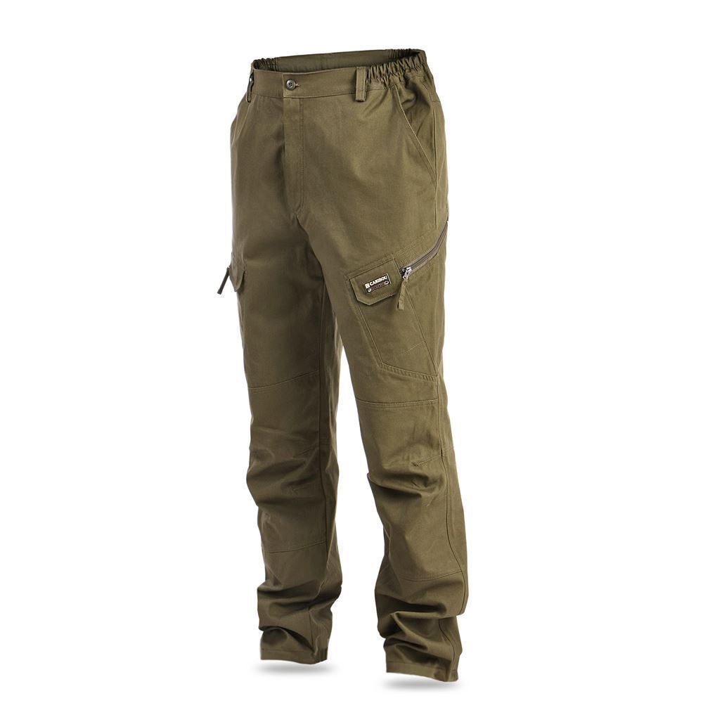 Брюки летние Caribou В202 прямого силуэта, с пятью шлёвками по талии. Выполнены из ткани Канвас (100% хлопок). Пояс по бокам на эластичной тесьме. На передней половинке два накладных кармана, по бокам два фигурных втачных кармана с тесьмой "молния" и клапаном с застёжкой. В области коленей выточки. По низу задней половинке брюк эластичная лента.