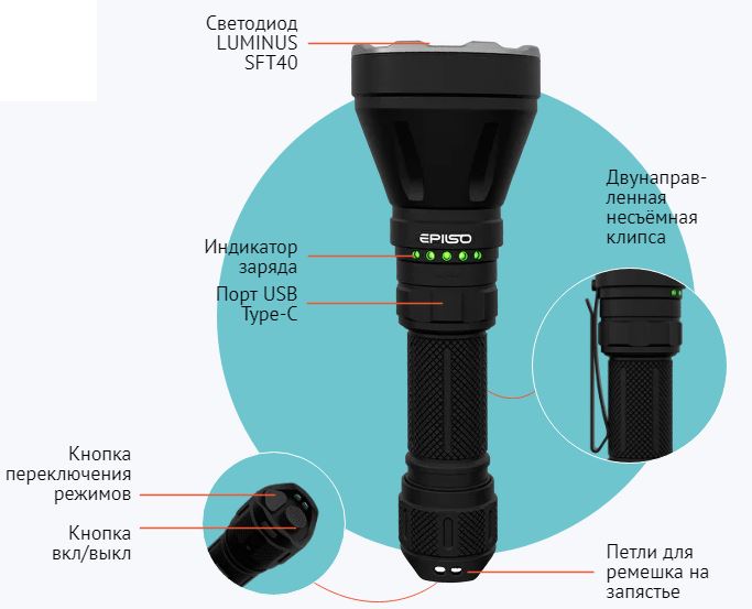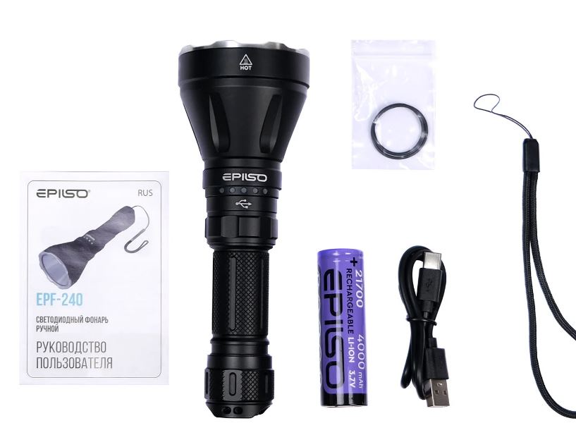 Главными характеристиками этого фонаря являются его компактность, герметичность, прочный корпус и дальность светового потока. Кроме того, EPILSO EPF-240 предлагает различные режимы работы, позволяя выбрать подходящий режим в зависимости от ситуации. Используется светодиод LUMINUS SFT40. Максимальная яркость фонаря составляет 1800 Люмен. Дальность свечения до 1000 метров!