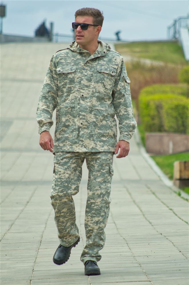 Костюм состоит из куртки и брюк, выполненных в светло-сером камуфляжном цвете, которые идеально сочетаются с окружающей природой. Куртка имеет удобные карманы на груди и плечах, где можно хранить мелочи и необходимые в лесу предметы.