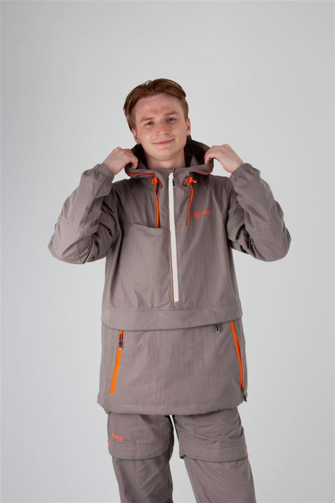 Куртка имеет укороченный крой, собранный на широкую резинку по низу и на рукавах. Регулируемый капюшон позволит защитить Вас от солнца и ветра. Два вместительных нагрудных кармана на липучках, объемный передний влагозащитный карман и два боковых кармана без застежки обеспечат надежное хранение всех необходимых мелочей. Низ куртки регулируется для дополнительного комфорта.