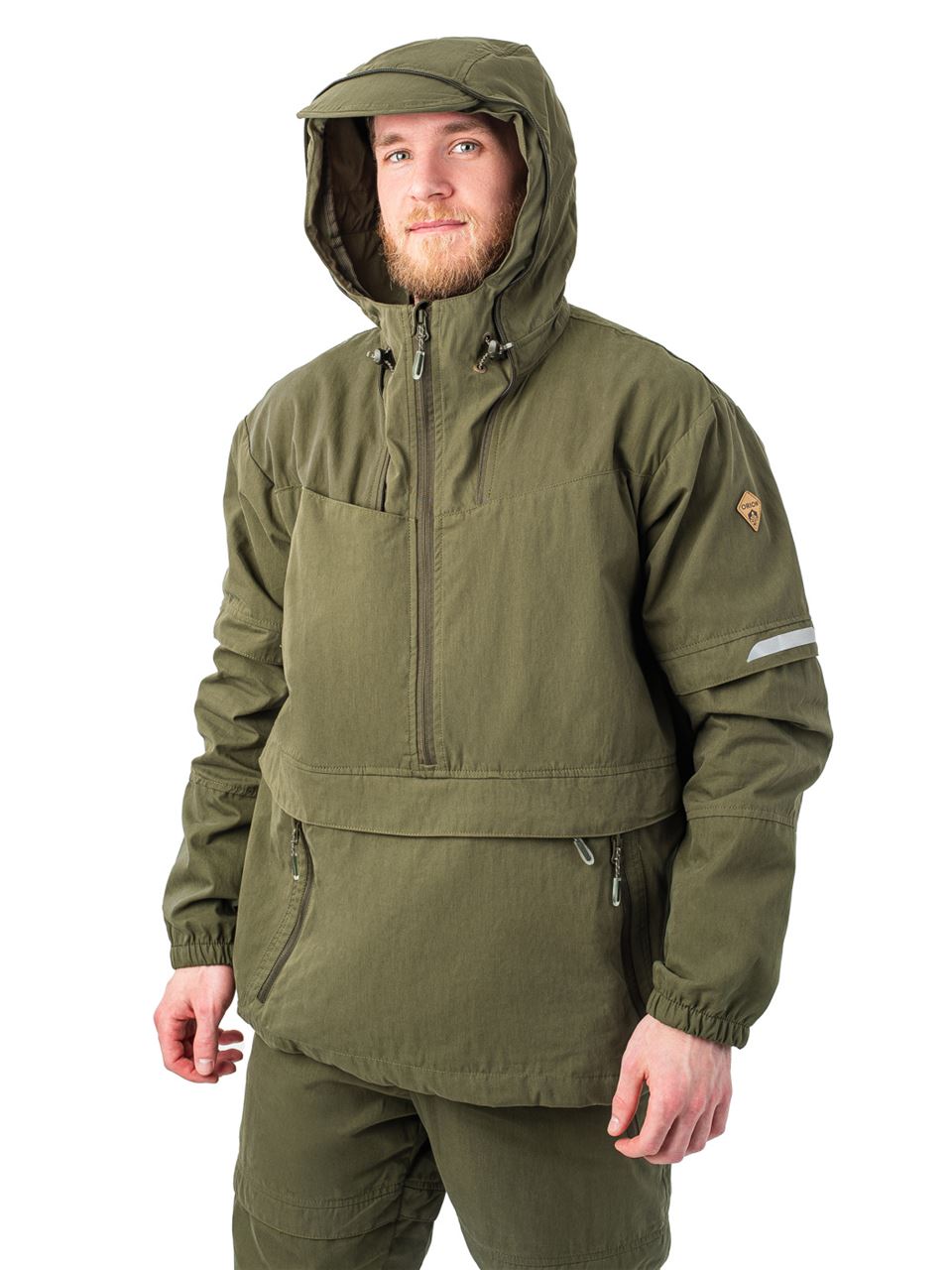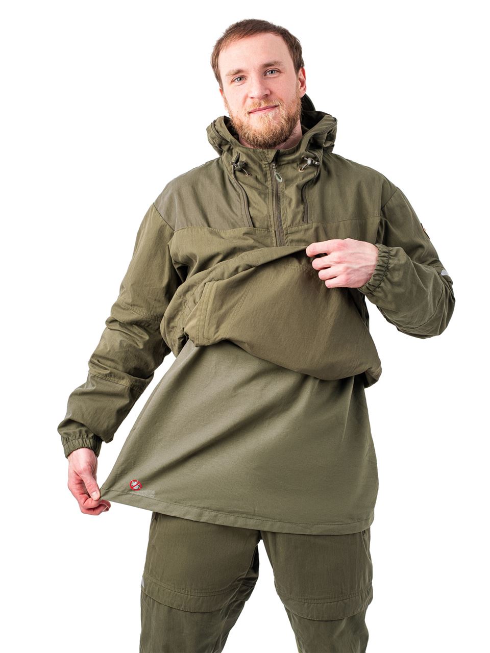 Состоит из куртки типа «анорак» с капюшоном и брюк прямого кроя. Костюм оснащен специальными ловушками для клещей, внутри куртки предусмотрен дополнительный слой хлопковой трикотажной ткани, которая заправляется в брюки для максимальной защиты от проникновения внутрь изделия. Низ куртки регулируется для дополнительного комфорта. Рукава оснащены плотными трикотажными манжетами. Капюшон с отстегивающейся противомоскитной сеткой, которая компактно укладывается в карман на груди. На куртке большой карман-кунгуру с 2-мя входами на молнии и влагозащитный карман под клапаном. Эластичный пояс со шлевками и внутренней резинкой гарантирует идеальную посадку. Низ брюк собран на резинку, что обеспечивает дополнительный комфорт во время движения. Два боковых кармана без застежки дополняют функциональность модели. Внутренние манжеты на штрипках позволяют заправлять брюки в ботинки для максимальной защиты. Этот костюм отлично подойдет для всех, кто часто и долго бывает в лесу. Для обеспечения безопасности в темное время суток вся печать на изделии является светоотражающей, а также имеются светоотражающие канты.
