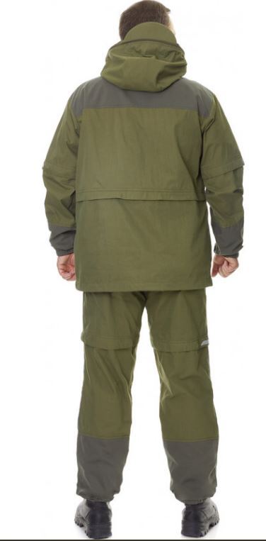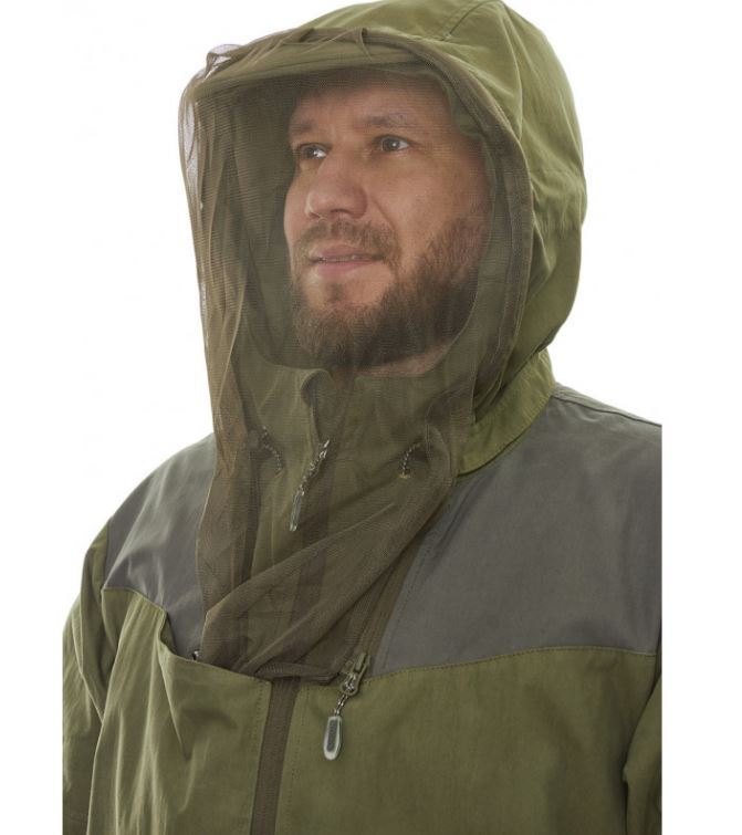 Костюм оснащен специальными ловушками для клещей, внутри куртки предусмотрен дополнительный слой хлопковой трикотажной ткани, которая заправляется в брюки для максимальной защиты от проникновения внутрь изделия. Рукава оснащены плотными трикотажными манжетами. На капюшоне предусмотрена молния для противомоскитной сетки, которая компактно укладывается в карман на груди. В передней части куртки предусмотрен объемный передний влагозащитный карман и два боковых. Этот костюм отлично подойдет для всех, кто часто и долго бывает в лесу. Для обеспечения безопасности в темное время суток вся печать на изделии является светоотражающей.