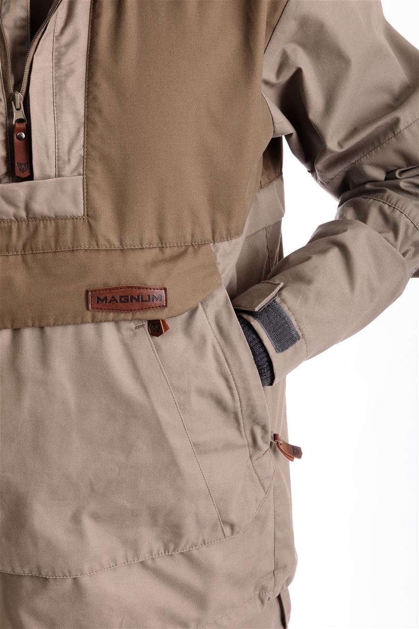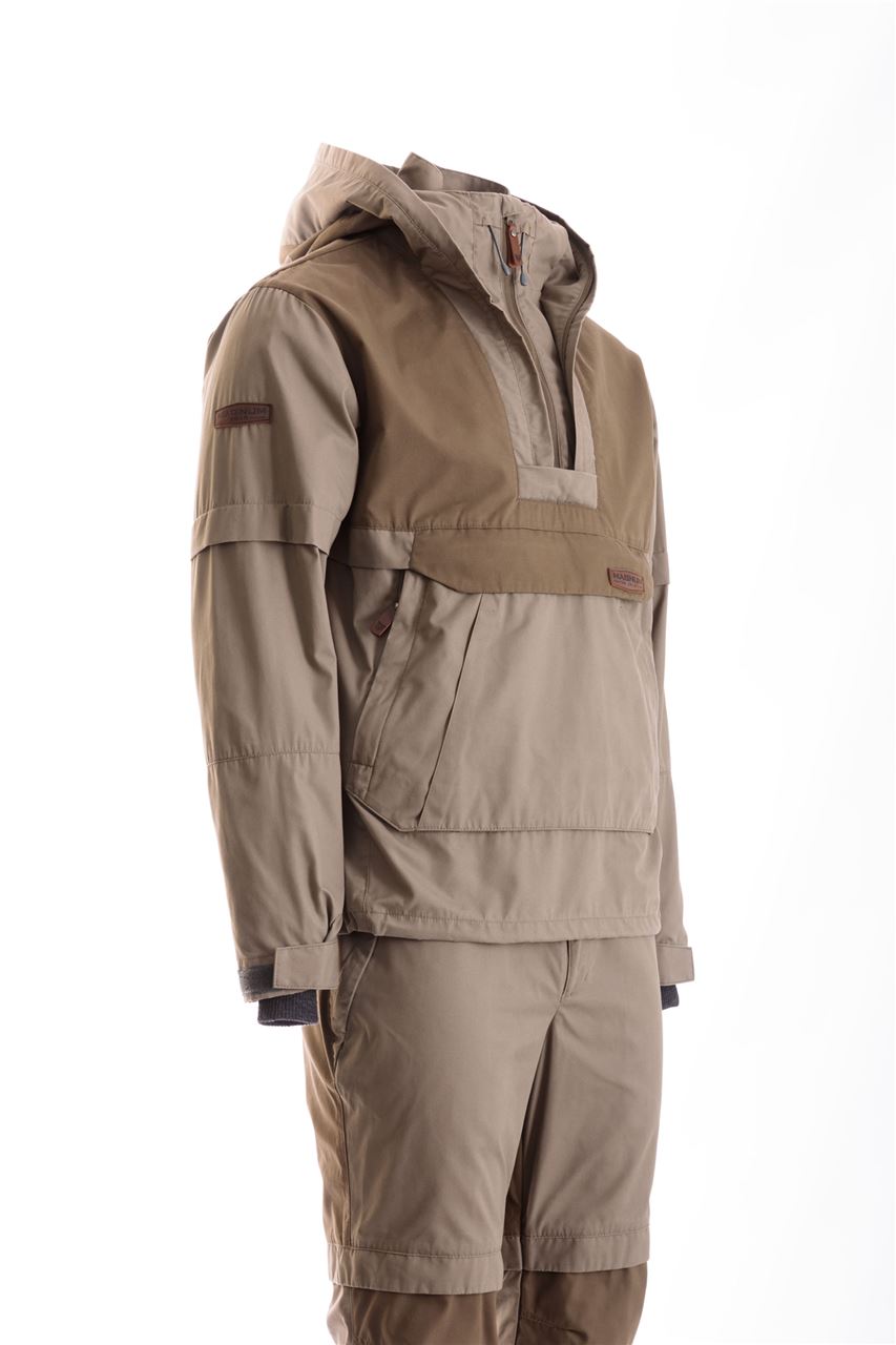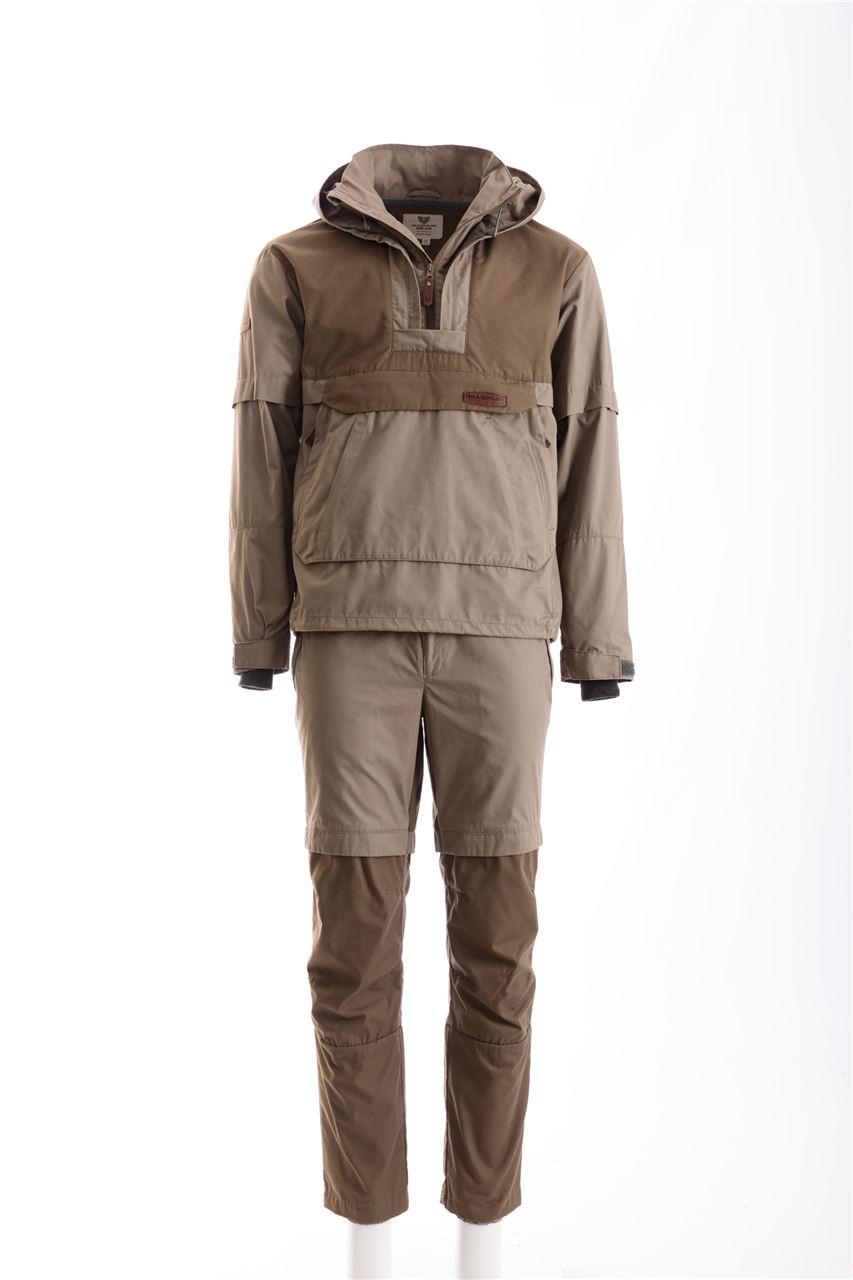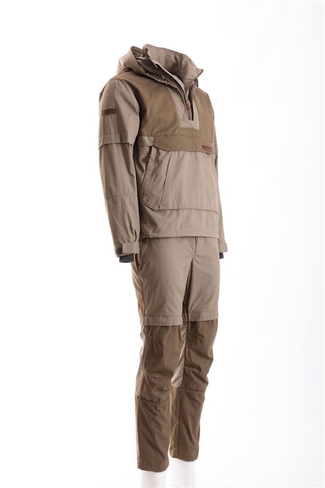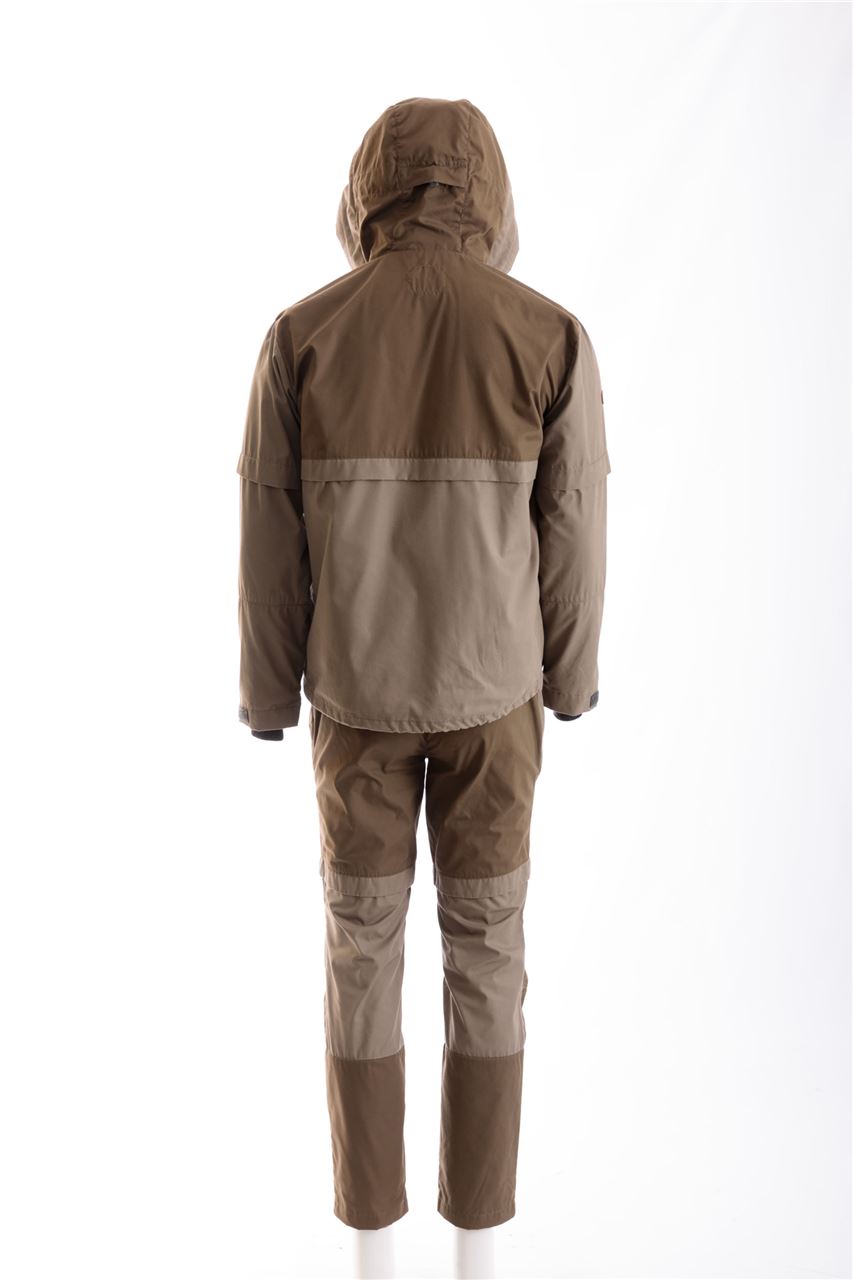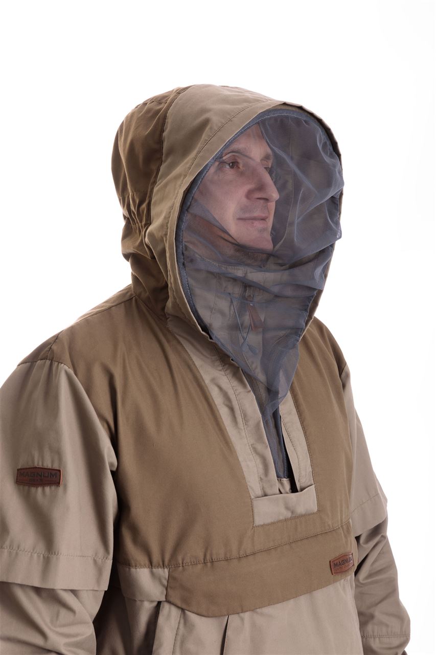 Костюм имеет внушительный набор средств механической защиты: складки-ловушки на куртке и брюках, полностью съемная москитная сетка, противоэнцефалитная "юбка" и плотные манжеты на куртке и брюках.