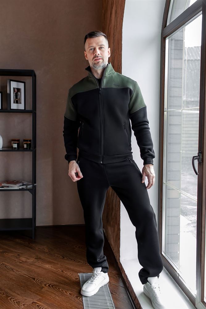 Кофта: Воротник-стойка; - Карманы на молнии. Брюки: - Брюки заужены к низу; - Пояс брюк на резинке