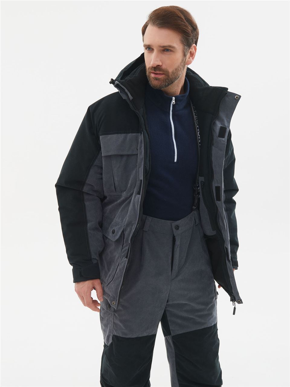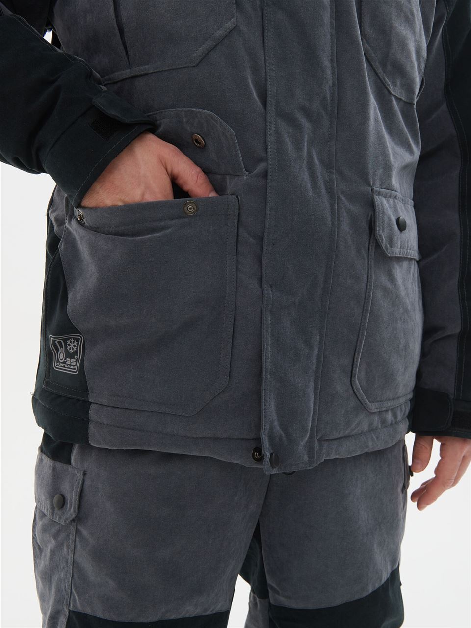 - 4 внешних утепленных кармана: Два на груди для мелочей и документов, два объемных снизу с клапанами — для всего необходимого. Все карманы изнутри утеплены флисом, так что ваши руки и вещи всегда в тепле.