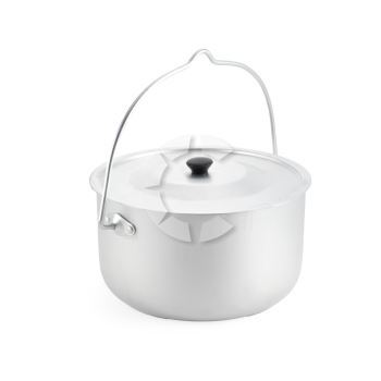 Котелок цилиндрический «Следопыт» - ваш отличный спутник как на даче, так и в любой загородной поездке. Вскипятить воду, приготовить суп, сварить походное жаркое или кашу – все эти задачи выполнимы! Котелок изготовлен из пищевого алюминия, практичен, не подвержен коррозии и прост в уходе. Корпус котла обладает высокой теплопроводностью, что позволяет ему быстро прогреваться. Небольшая масса облегчает транспортировку, входящая в комплект крышка предотвращает выкипание жидкости. Качественная ручка с изгибом под треногу или костровой трос не позволит котелку соскользнуть. Размеры котелка: Объем – 3 л. Вес котелка – 500 гр.