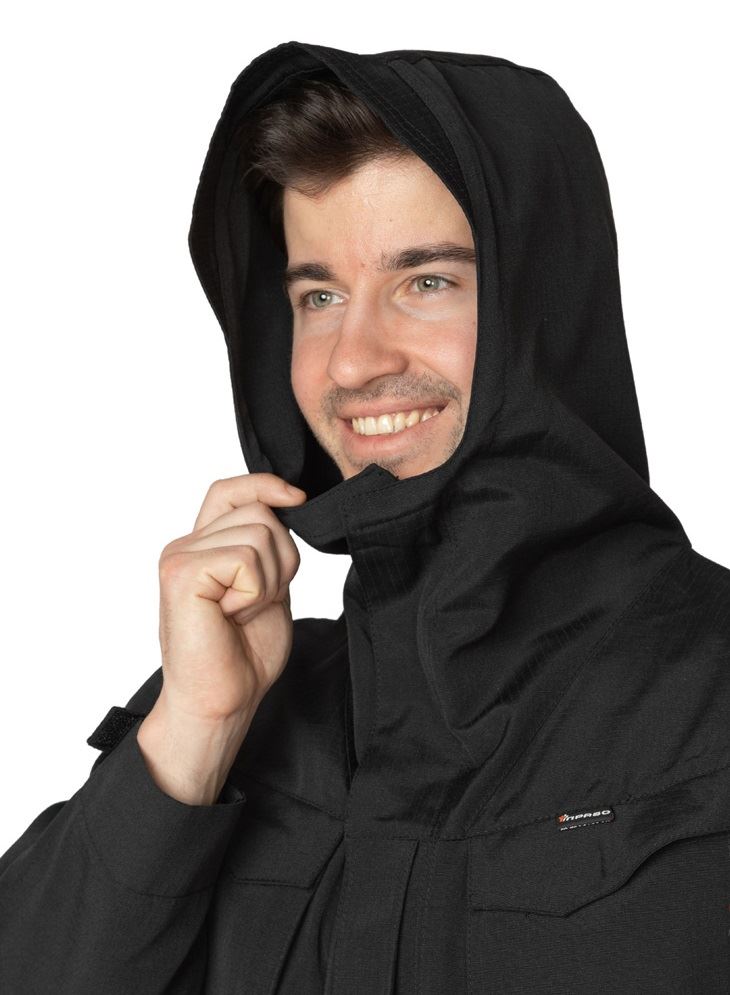 Капюшон: цельнокроеный капюшон с воротником и козырьком. Край капюшона и воротника усилен пластиковой лентой для сохранения формы при активном движении и сильном ветре.