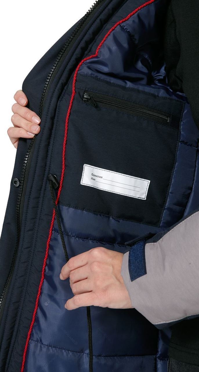 В верхней части зимней рабочей куртки «Альфа», по низу деталей кокеток из отделочной ткани спереди и сзади расположены световозвращающие канты для безопасности в условиях плохой видимости, что делает её подходящей спецодеждой как для производственной, так и для городской среды.