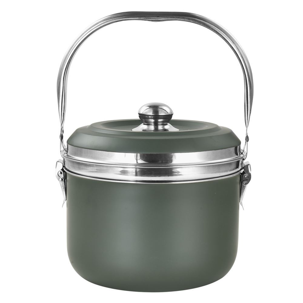 Котелок и кастрюля общим объемом в 6.8 л подходят для приготовления на различных горелках или открытом костре. Долгое время сохраняют температуру пищи.