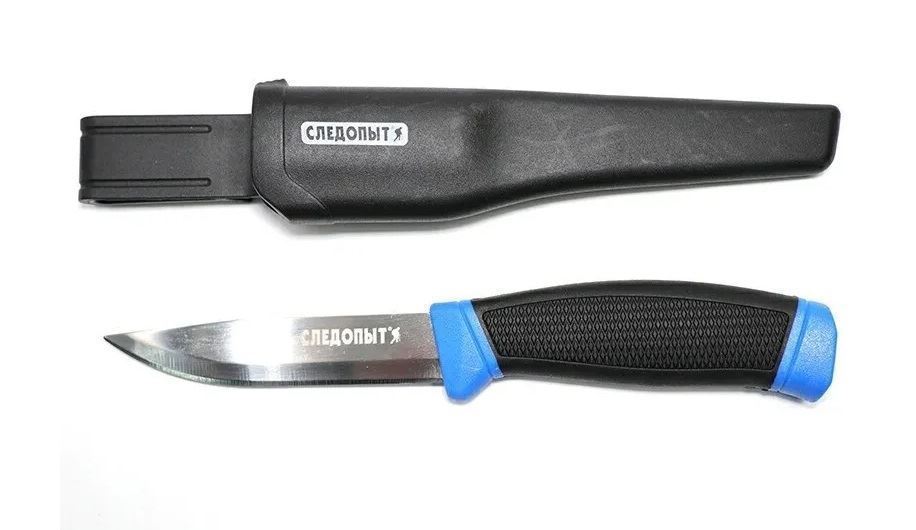 Нож разделочный Следопыт универсальный, прорезиненная ручка PF-PK-18 нож универсальный Следопыт имеет прочное лезвие из нержавеющей стали с супер острой заточкой. Эргономическая ручка выполнена из пластика с резиновой вставкой, очень удобно располагается в руке не скользит. В комплекте с ножом поставляется пластиковый чехол-ножны с петлей для крепления на ремне.Нож предназначен ка для рыболовов, так и для туристов и грибников, может быть использован в быту и на кухне.