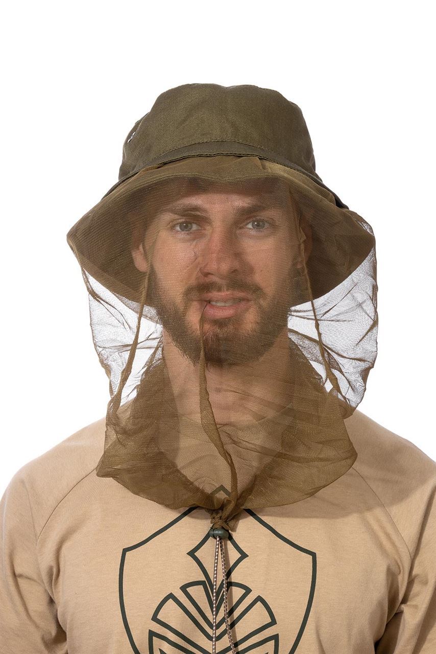 Длинная антимоскитная сетка защищает от насекомых шею и голову, сворачивается и прячется в специальное отделение в полях панамы.