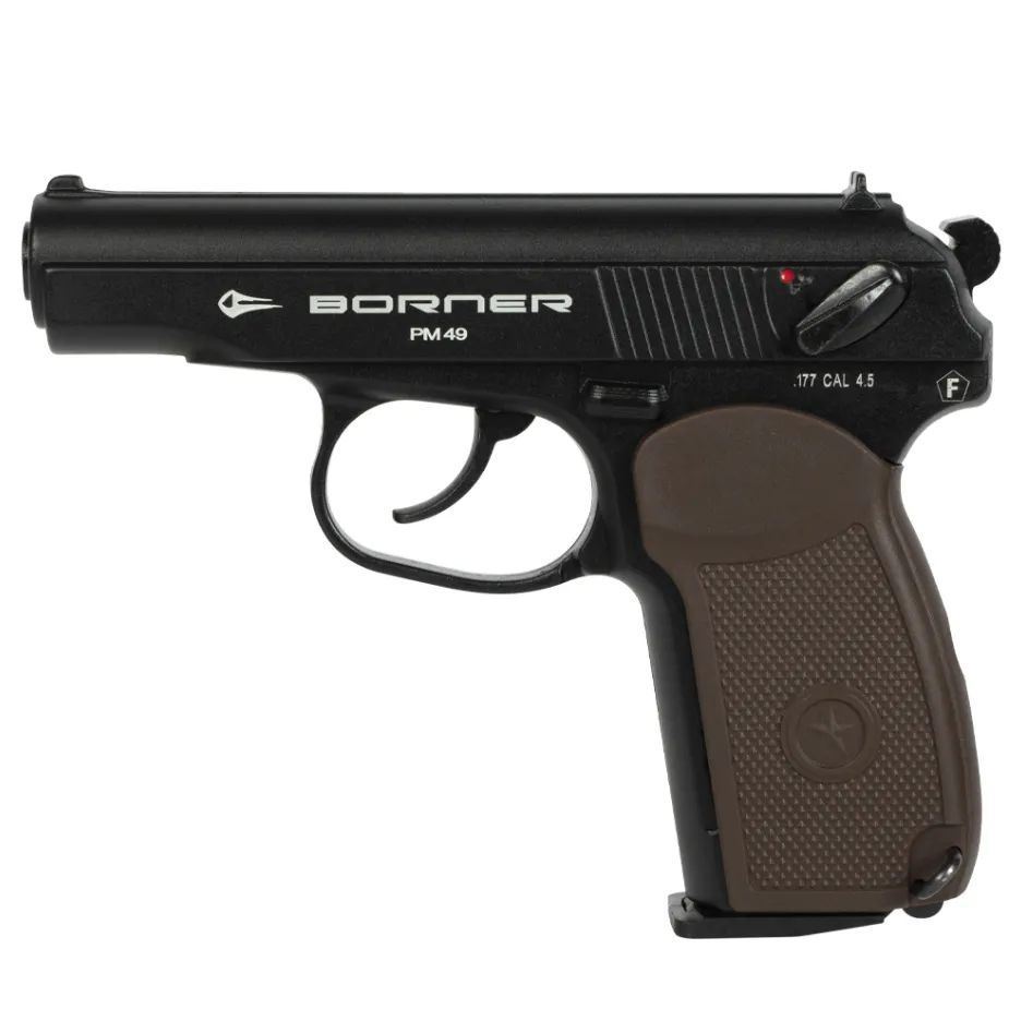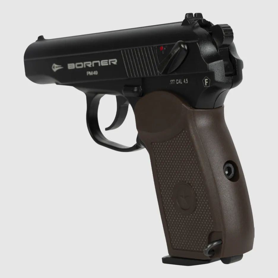 Пневматика Borner ПМ - копия всемирно известного пистолета «Макарова», сконструированного в 1949 г. Боевой аналог был на вооружении милицейских и армейских подразделений Советского Союза. Выполненная на русском инструкция облегчает эксплуатацию и знакомство с оружием. Корпус пистолета - цельный литой, позволяет взводить спусковой курок при неподвижности рамы.