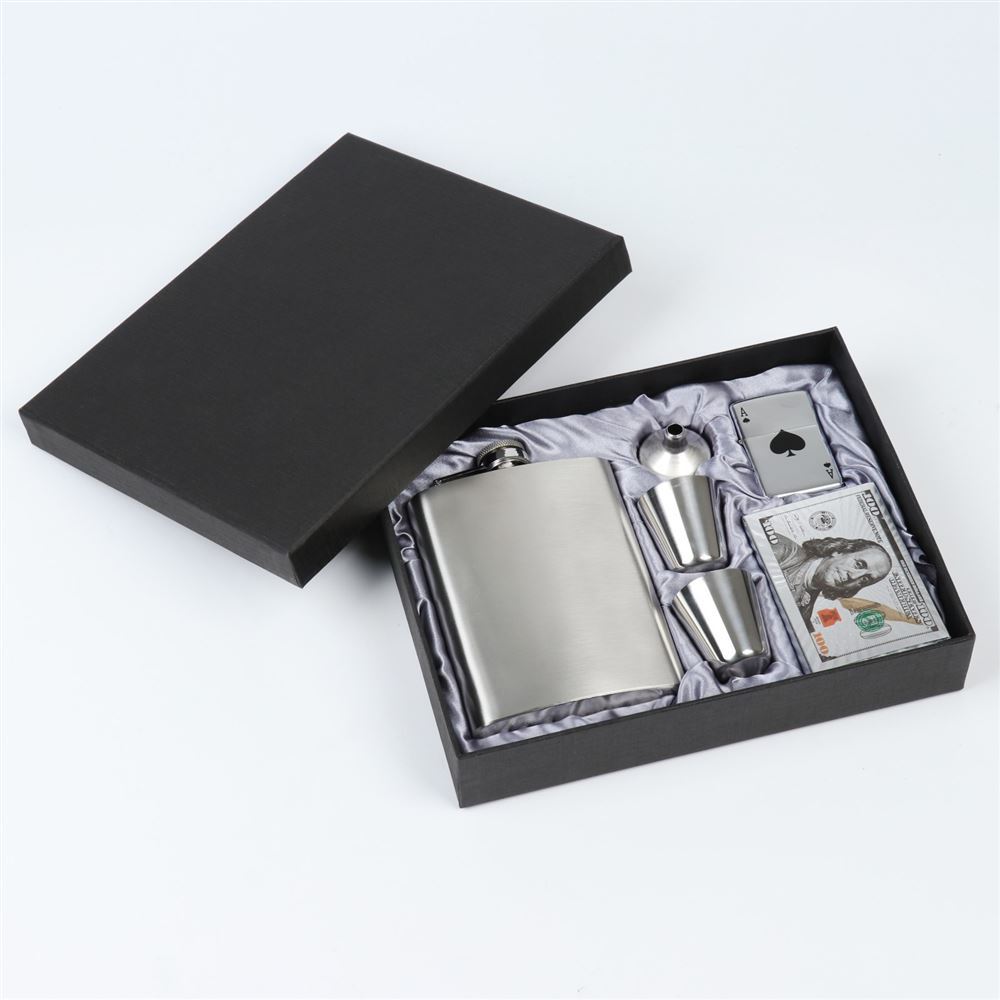 Составляющие набора: Воронка, Зажигалка, Игральные карты, Рюмки (стопки), Фляга