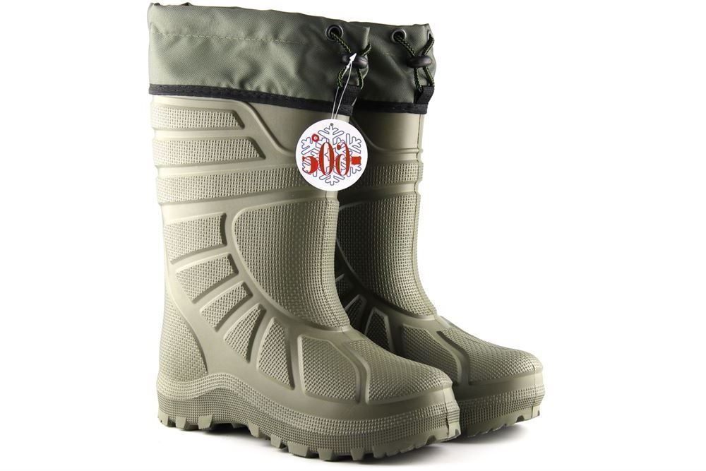 Сапоги выполнены из водонепроницаемого материала ЭВА методом литья. Углубленный протектор на подошве обеспечит устойчивость на льду.