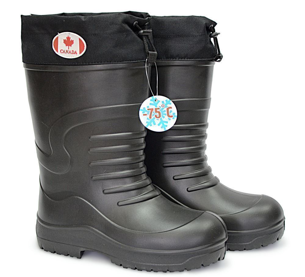Сапоги Canada производятся в России для экстримально -холодных температур. Рассчитаны на эксплуатацию до - 75 градусов. Сапоги Canada изготавливаются только черного цвета. Это новая модель на Российском рынке теплой обуви для охотников и рыбаков. Сапоги Canada имеют много преимуществ по сравнению с другими легкими сапогами. Например, самые толстые стенки сапога и подошва. Химический состав материала сапог ЭВА усовершенствован и имеет более прочную структуру. В районе пальцев пятки и по периметру ступни сапоги Канада имеют более толстый слой ЭВА для большей защиты ноги. Следовательно, Сапоги Canada реже прокалываются чем остальная обувь из такого материала, увеличена износостойкость, хотя вес сапог такой же легкий. Для уменьшения скользкости сапог предусмотрены специальные протекторы на подошве. А внутри сапога есть специальные ячейки для отвода влаги и для того чтоб нога внутри сапога не ездила.