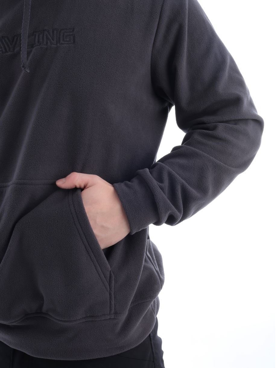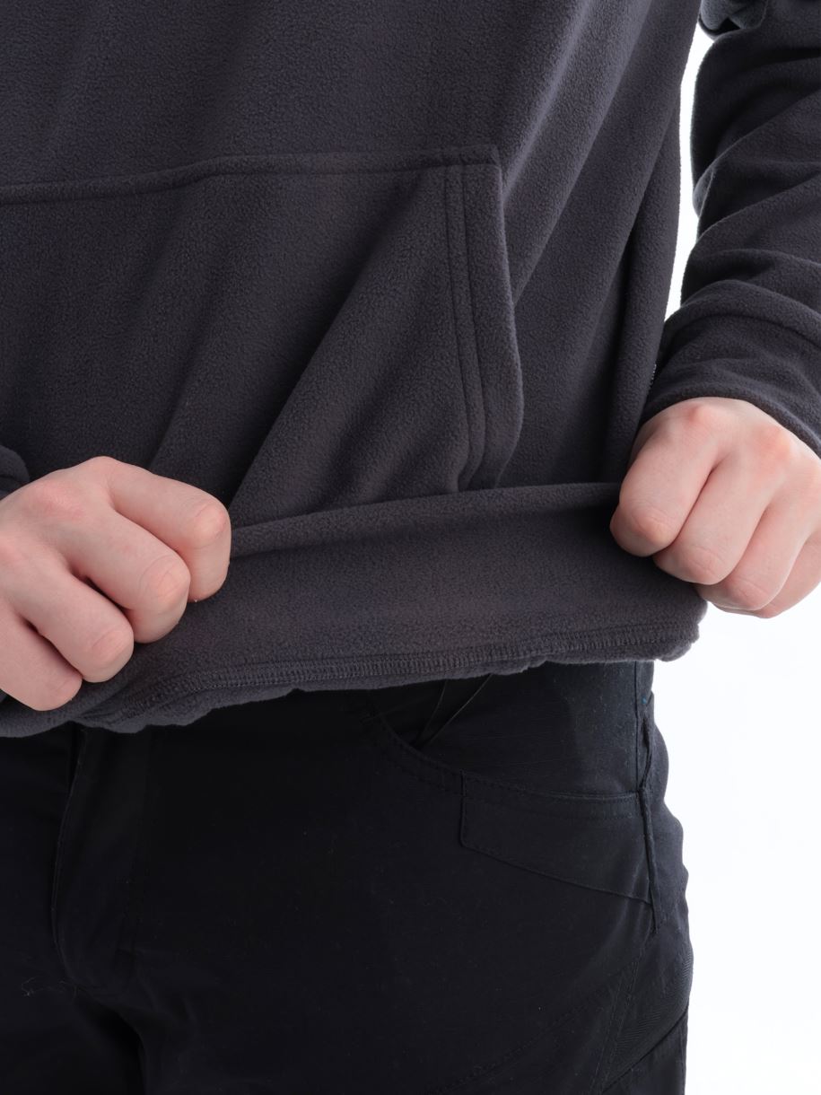 Толстовка оснащена удобным капюшоном, который защитит вас от ветра, и эластичными манжетами на рукавах и по низу, что обеспечивает плотную посадку и предотвращает попадание холодного воздуха. Просторные карманы добавляют практичности, позволяя хранить мелкие предметы под рукой.