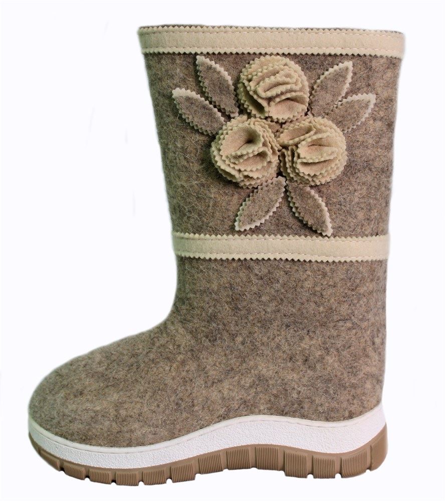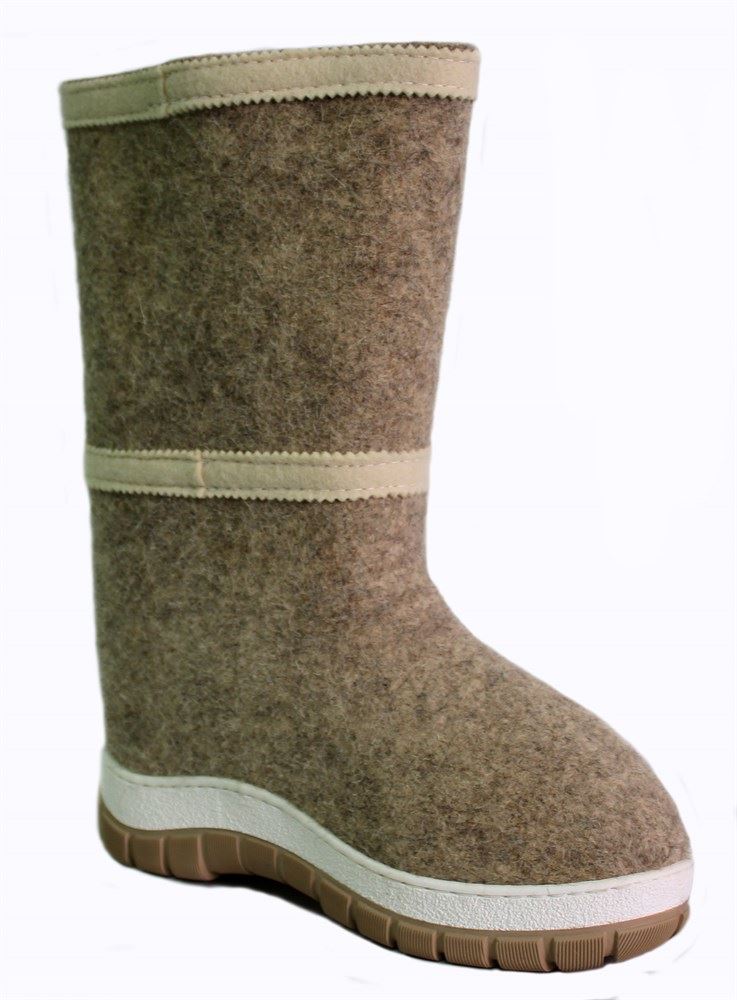 Валяная обувь на подошве из термопласта имеет дополнительные преимущества: она не промокает при сырой погоде. Подошва крепиться к готовому валенку клеевопрошивным методом. Таким образом, валенки на подошве сохраняют и свои теплозащитные свойства.